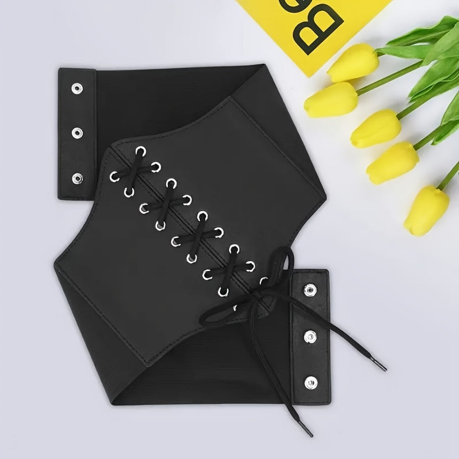 Black Round Metal Buckle Belt for Dresses and Tops - Casual Accessory for Women's Fashion