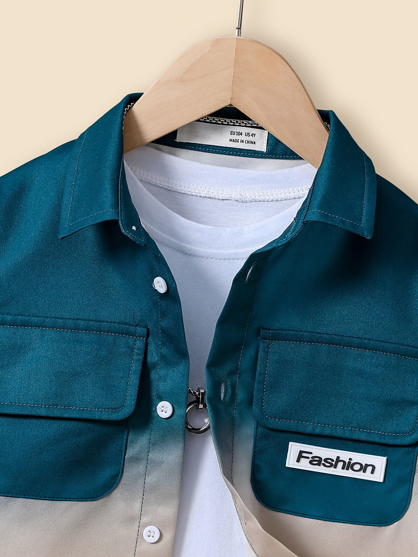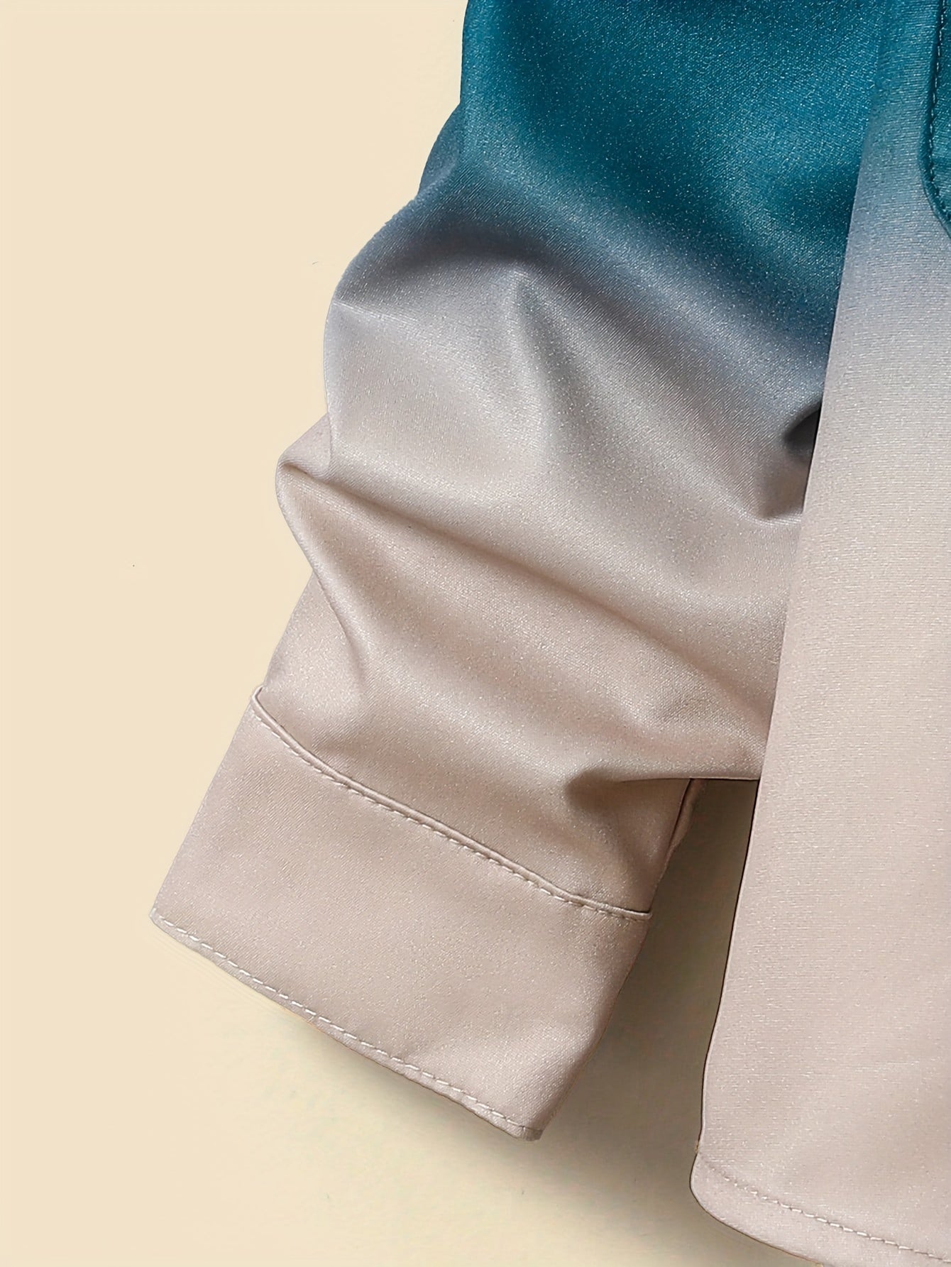 Gradient Long Sleeve Pocket Shirt And Jogger Pants, Comfy Spring Fall Clothes For Daily & Outdoor Wear