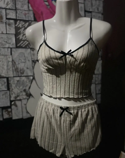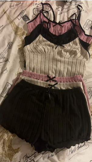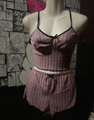 Soft Solid Color Loungewear with Lettuce Trim V-Neck Cami & Elastic Shorts - Trendy, Comfortable Sleepwear for Relaxing Style