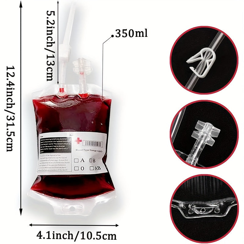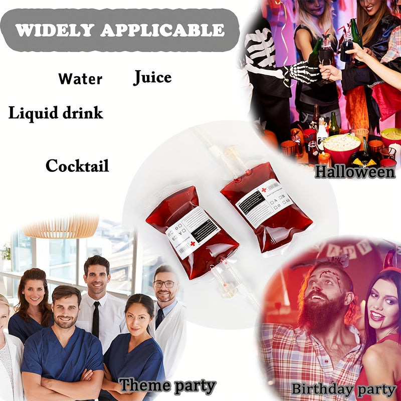 Vampire-Themed Plastic Beverage Pouches with No-Feather Decoration for Spooky Halloween Parties, Nurse Graduation, Zombie Cosplay Events and Horror Theme Celebrations