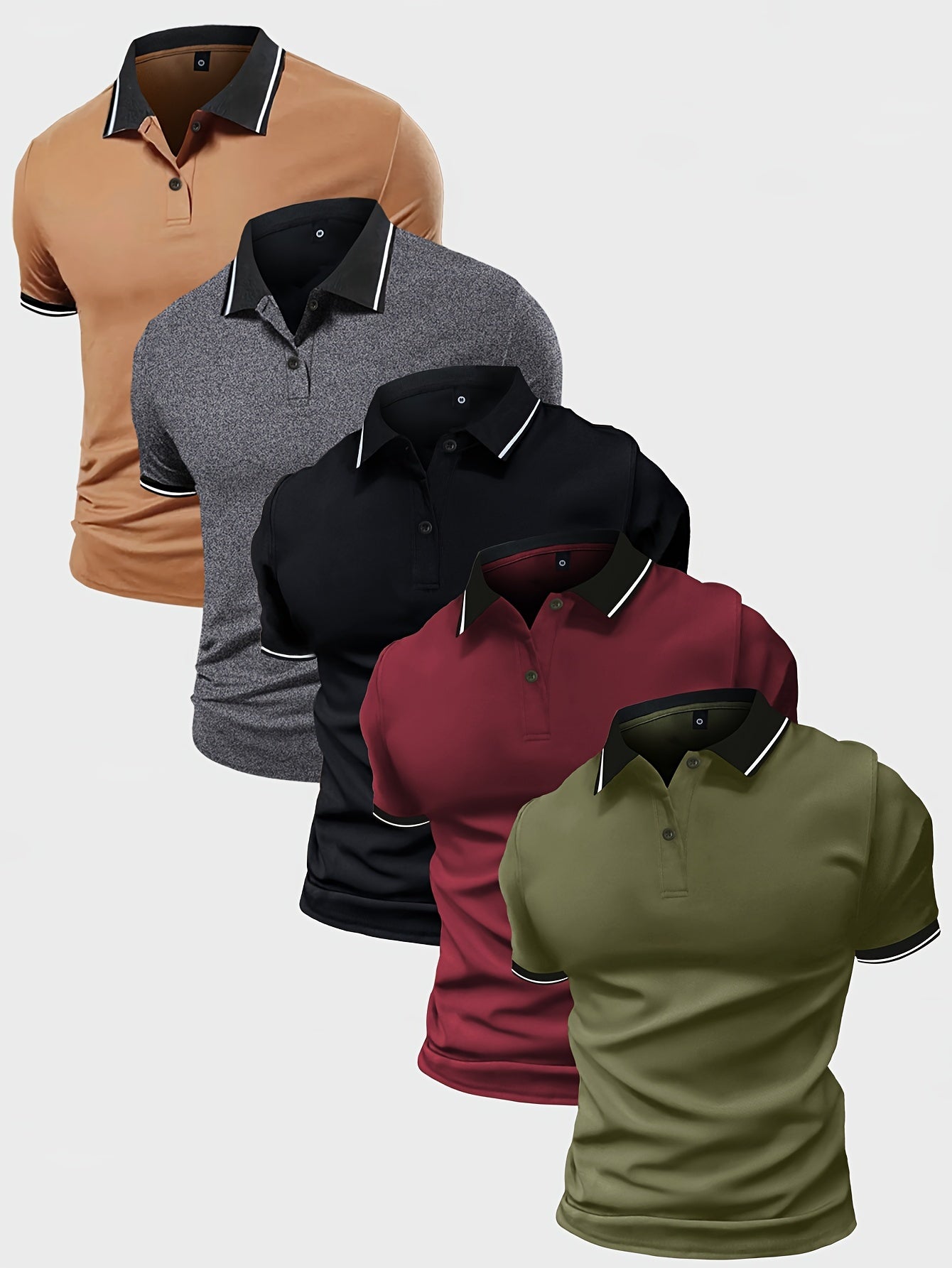 5pcs Comfy Short Sleeve Button Up Lapel Shirt for Golf Sports
