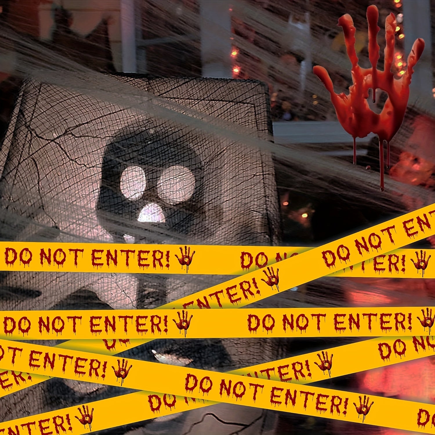 Water-Resistant, Safe for Kids, Horror Theme Party Decoration, Haunted House Barrier, Zombie Scare Accessory, Durable Plastic Warning Ribbon for Spooky Atmosphere Creation, 14+ Y