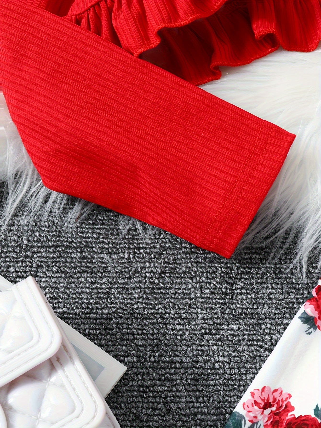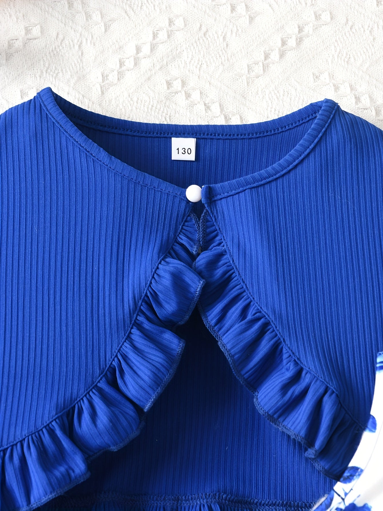 2 Piece Set Ruffle Decoration Cardigan Flower Print Sleeveless Dress