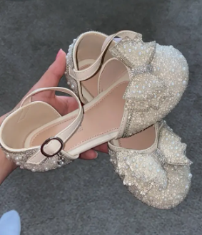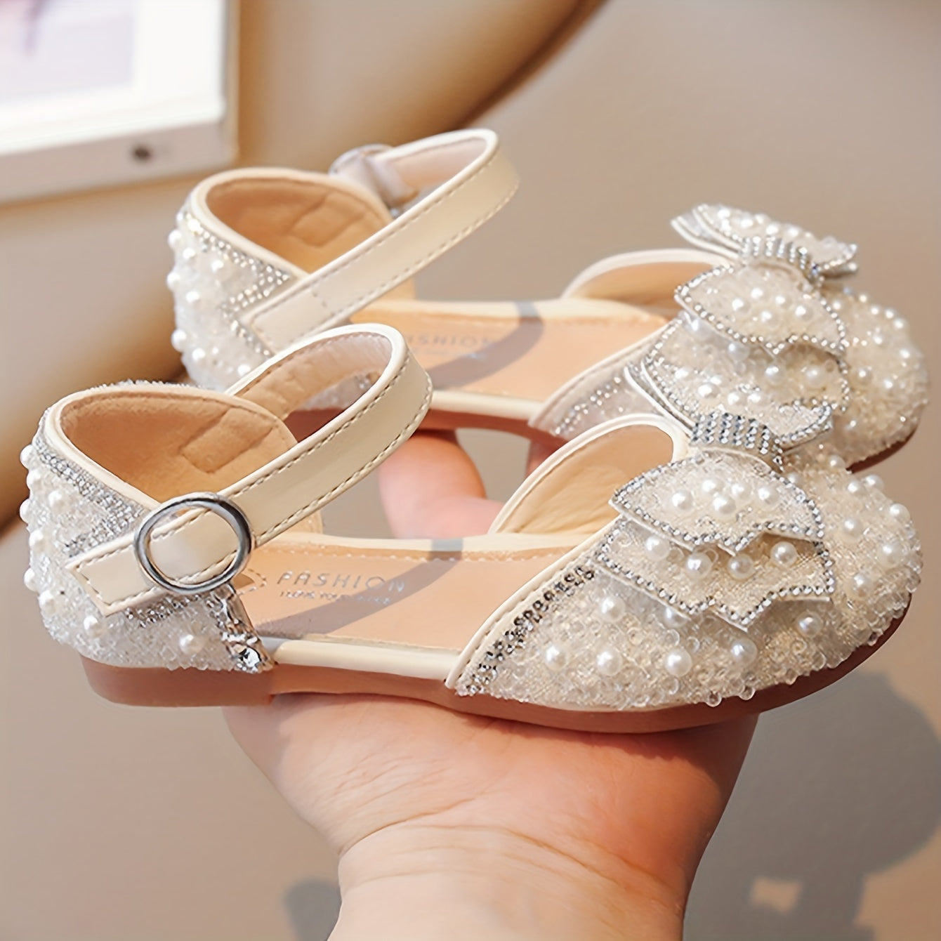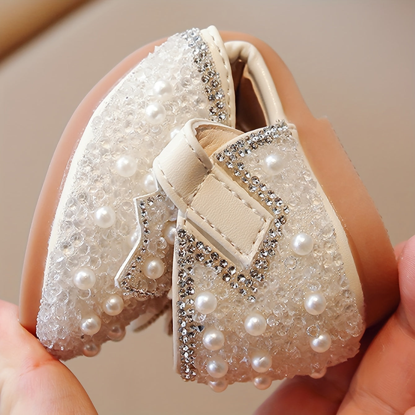 Girls Breathable Lightweight Bowknot Rhinestone Flat Shoes