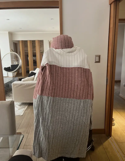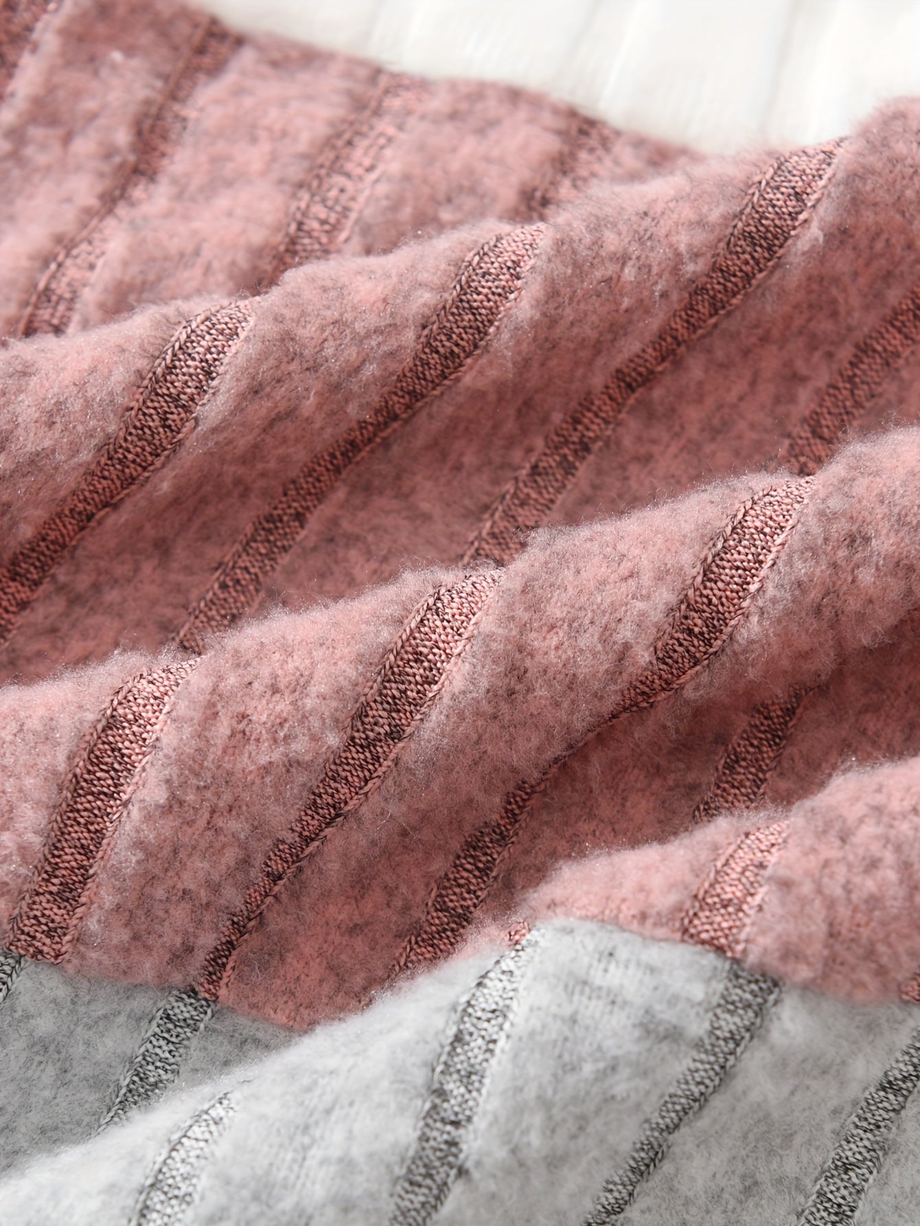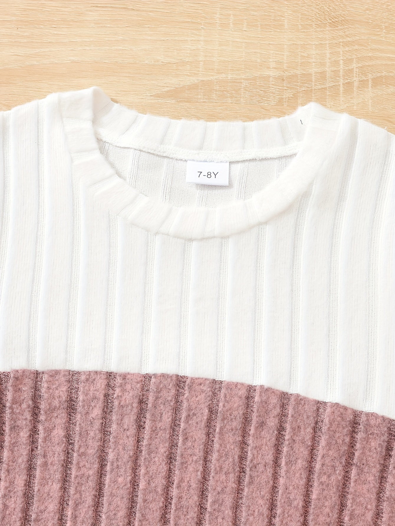 Three-Tone Color Block Long-Sleeve Dress and Matching Hat Set
