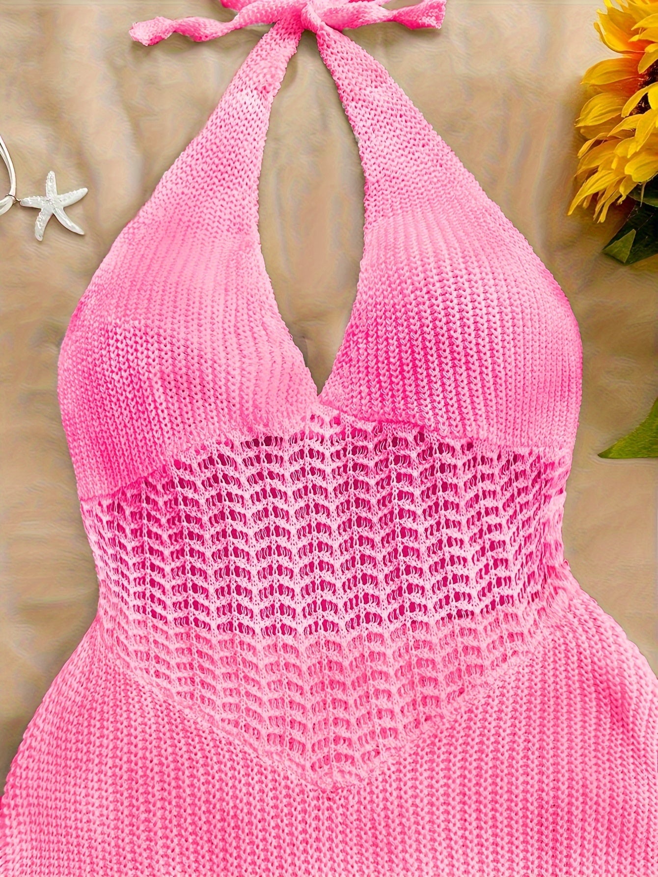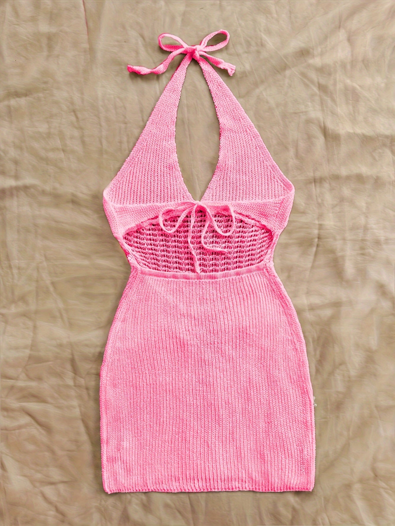 Hollow Out Halter Tie Neck Backless Dress