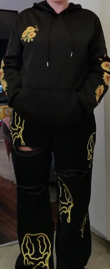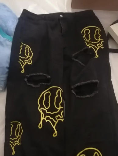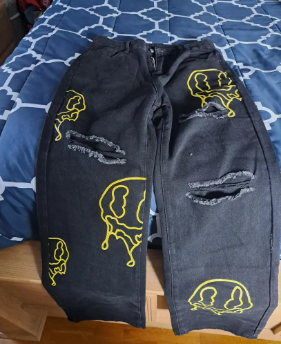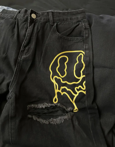 Neon Art, Ripped Details, Color Block, Non-Stretch Denim, Machine Washable, Perfect for Autumn and Urban Outfits - Trendy, Casual, Distressed Fashion Pants for Women