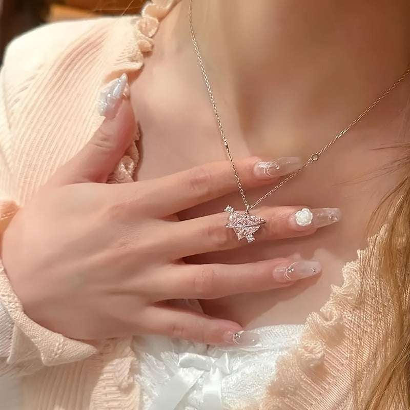 Pink Heart Rhinestone Charm Necklace Y2K Sweet Necklace Accessories For Gift