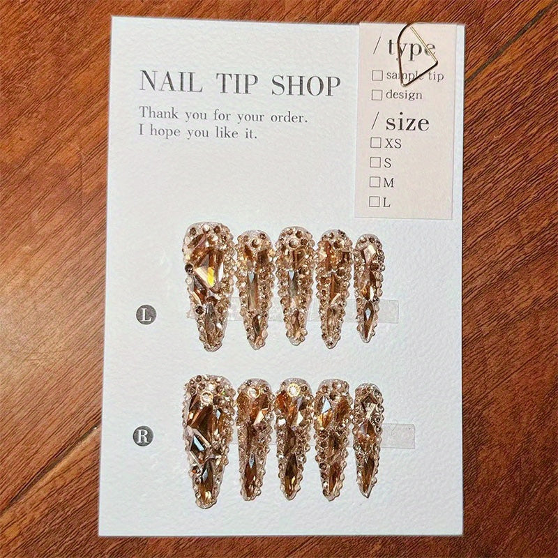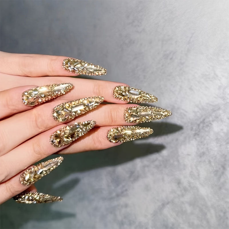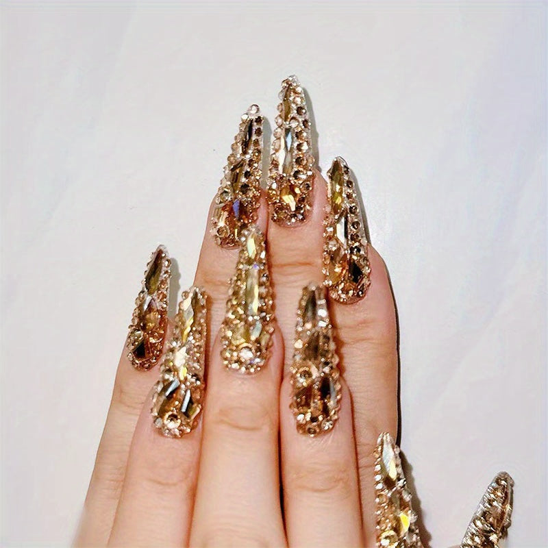 Luxurious 10PCS Golden Glitter Stiletto Press-On Nail Forms Set