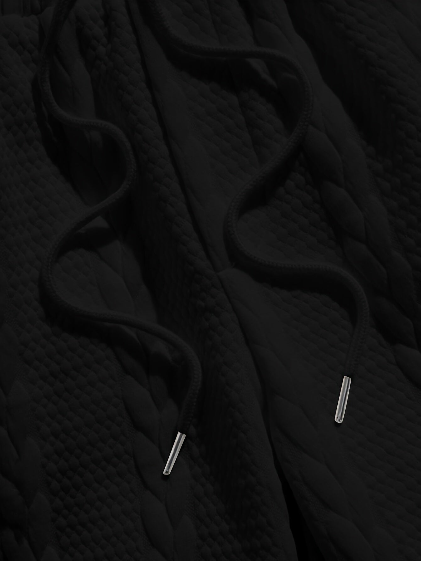 Solid Color, Short Sleeve & Drawstring Shorts, Breathable Polyester Blend, Round Neck