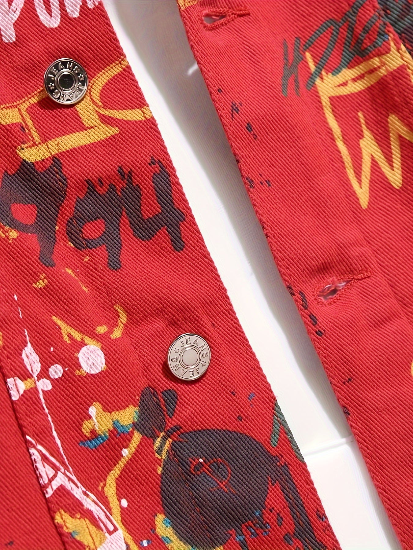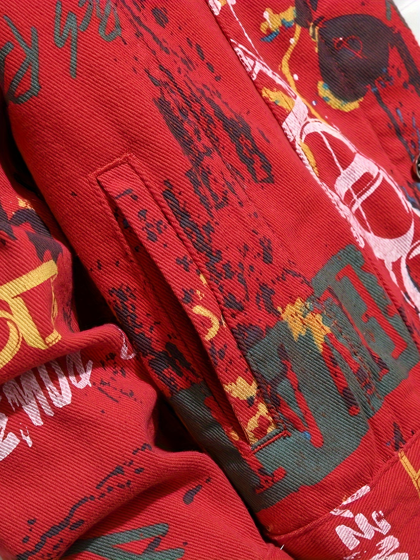 Doodles Pattern Streetwear Coat with Hipster Windbreaker Style, Jean Coats Design, Casual Outwear for Everyday Wear