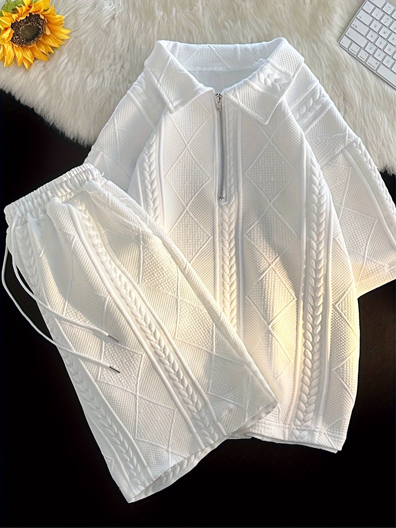 Breathable, Moisture-Wicking Polyester Zip-Up Short Sleeve Shirt & Drawstring Shorts Set with Machine Washable Convenience and Quick Drying Technology