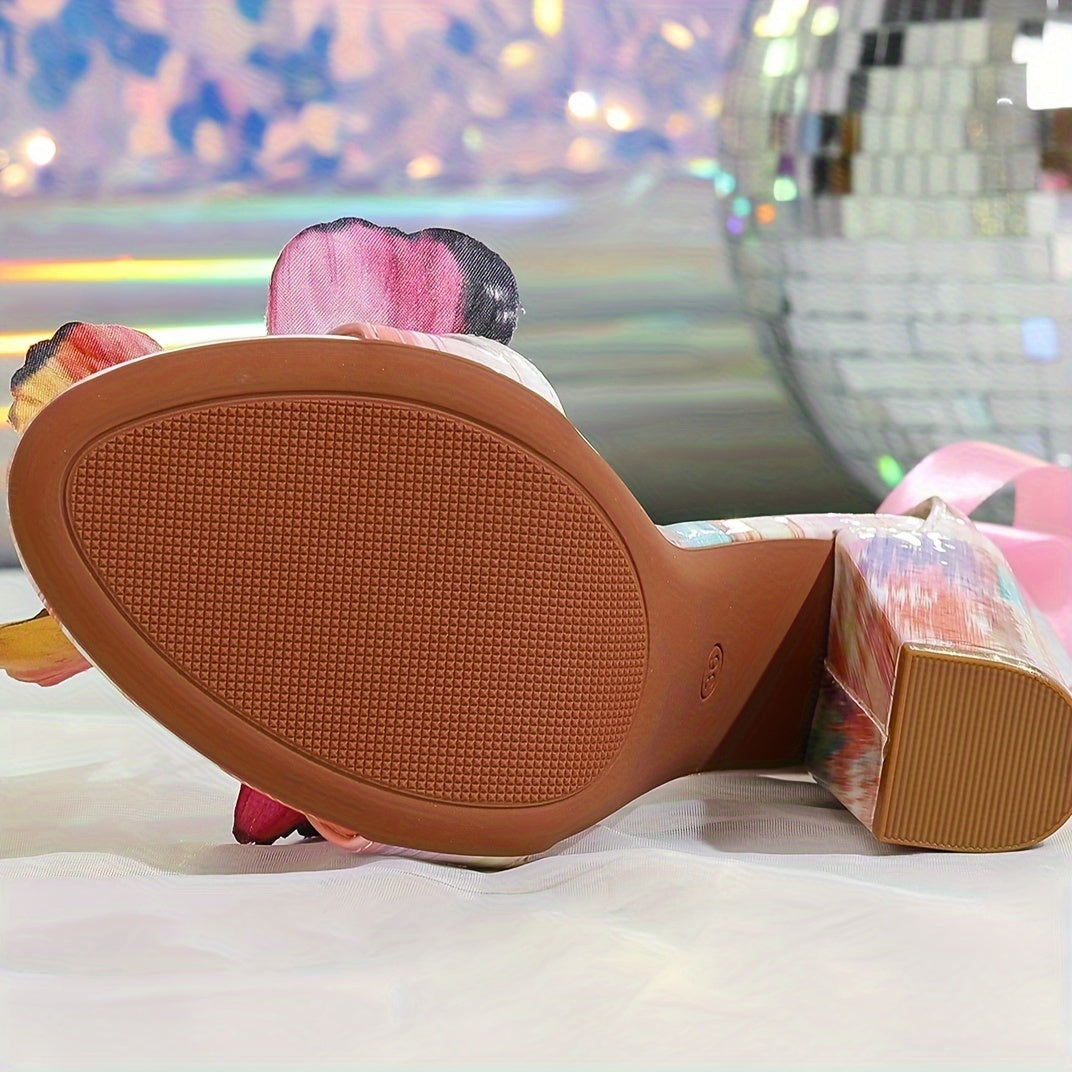 Embellishment, Breathable Pointed Toe Block Heel, Man-Made Upper, Rubber Sole, Ultrahigh Heel Party Pumps with Butterfly & Pearl Accents