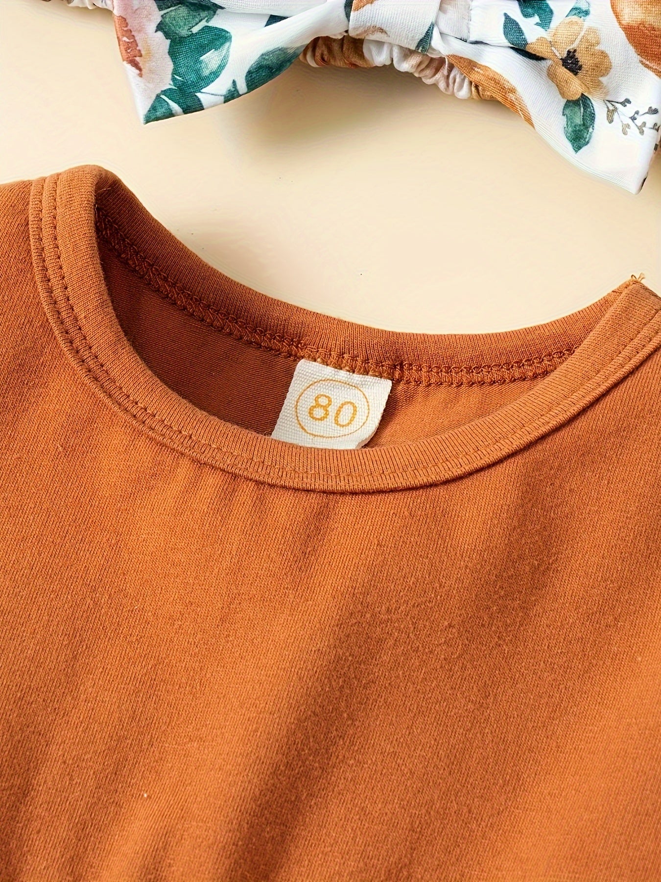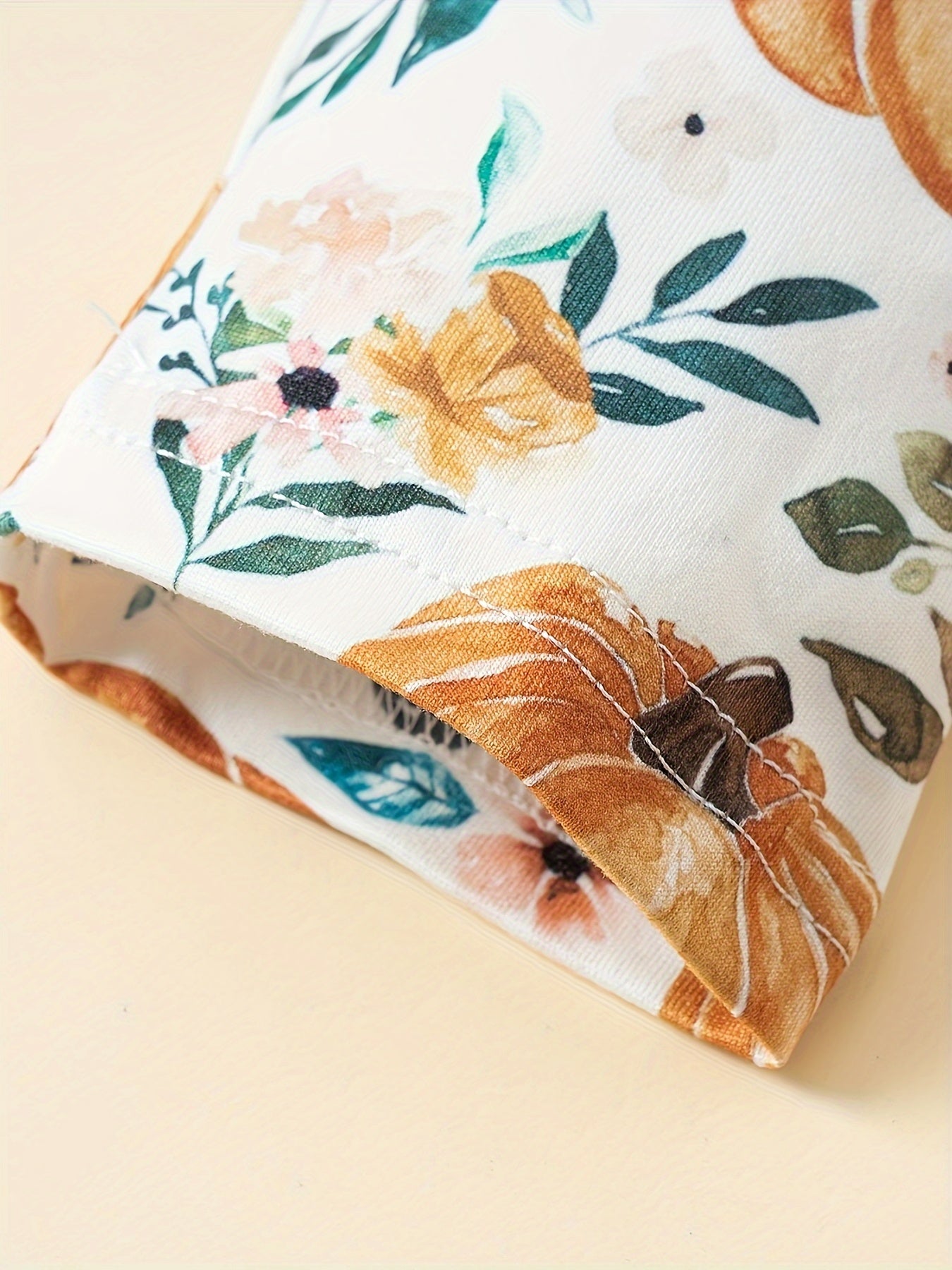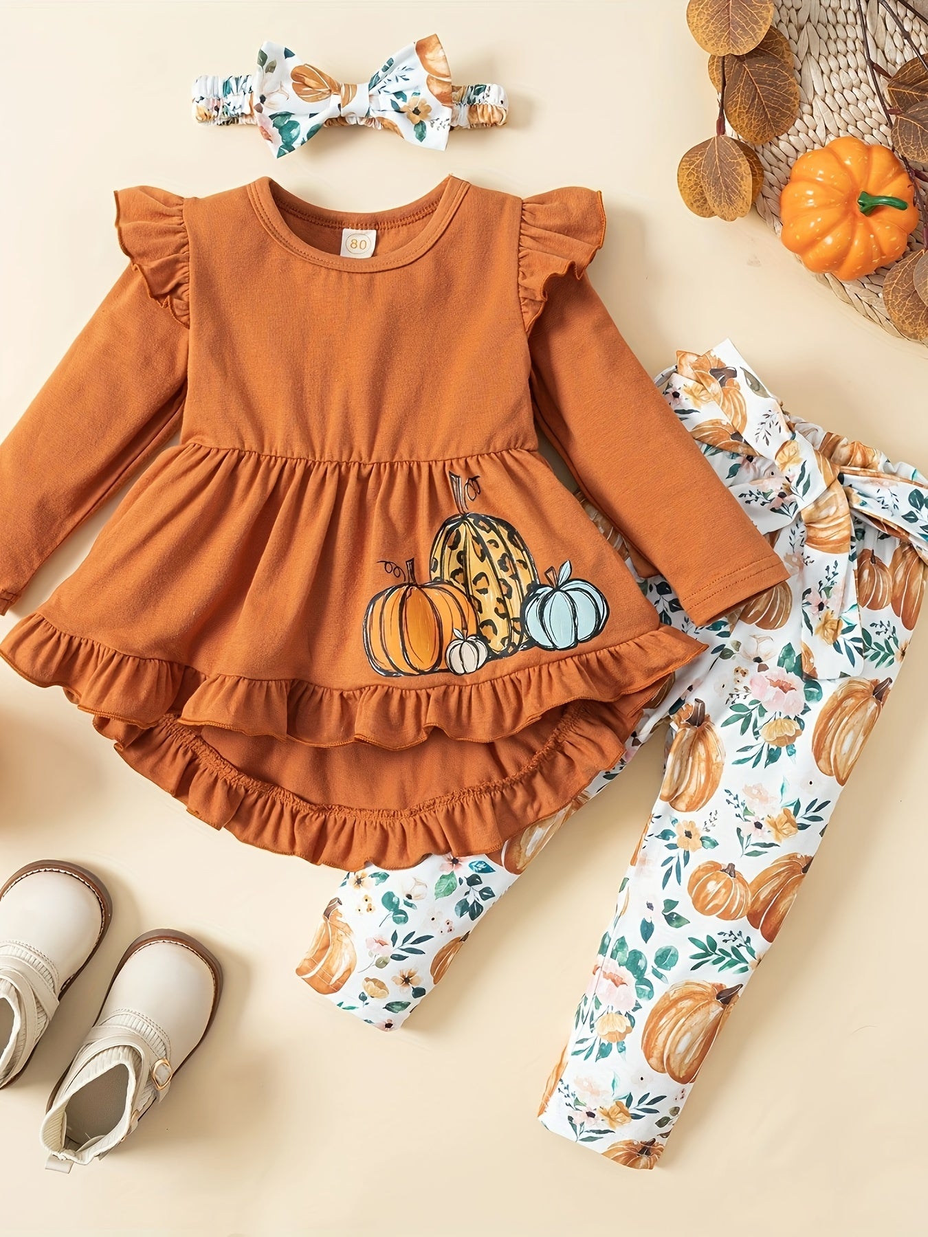Peplum Top & Pumpkin Full Print Pants Baby Girl Thanksgiving Fall Clothes