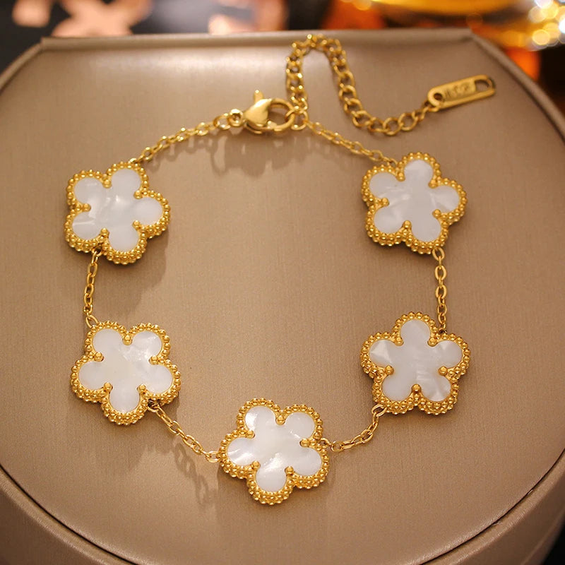 Trendy Lucky Clover Flower Stainless Steel Bracelets