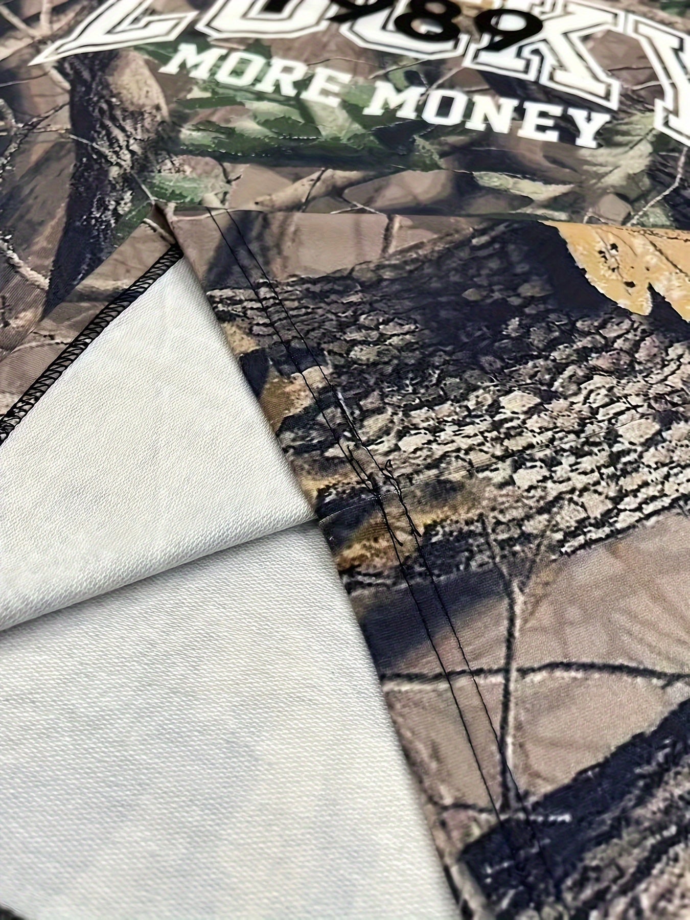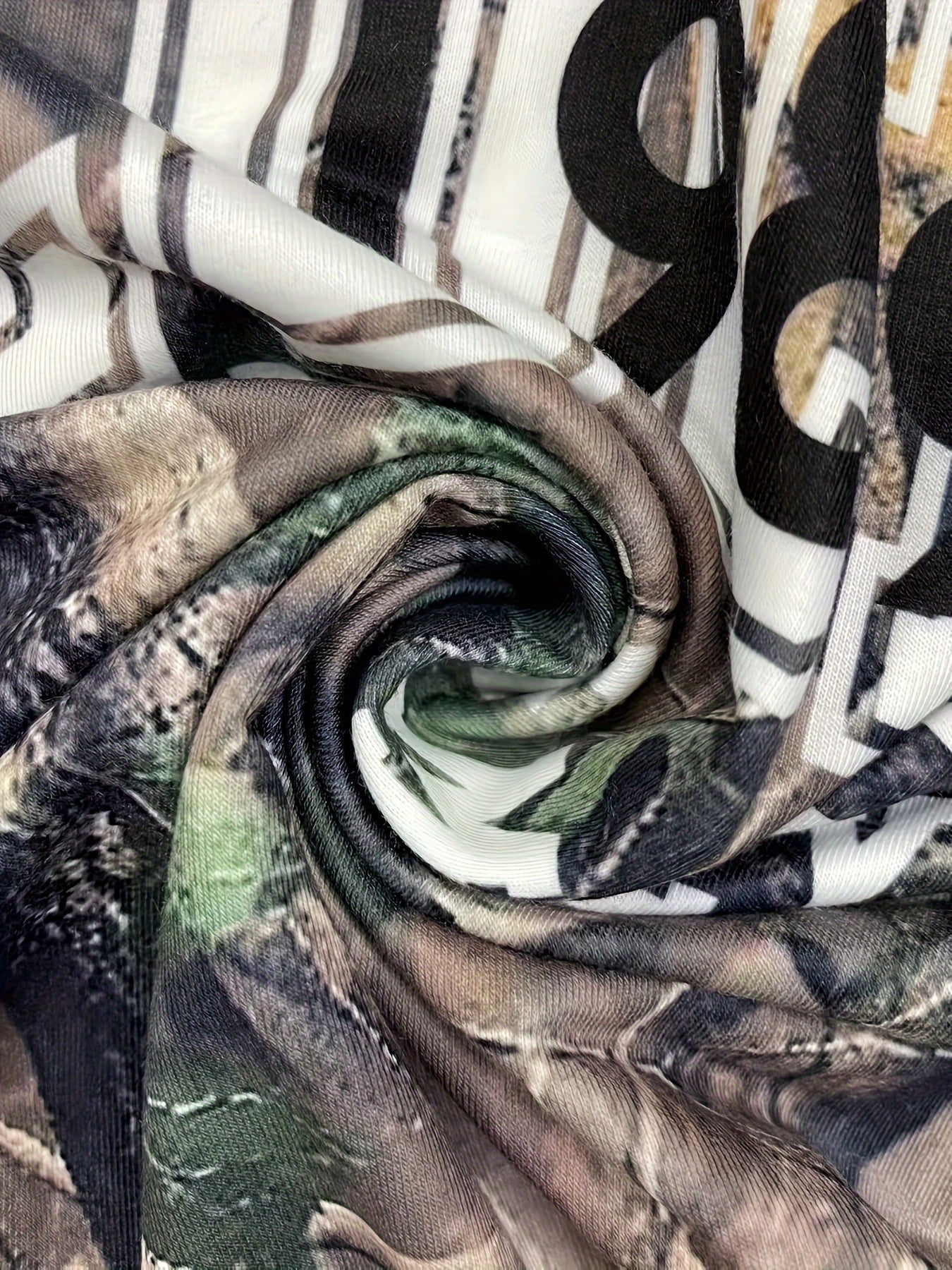 French Terry Cropped T Shirt Oversized Camo Tree Print Double Layer Long Sleeve T-shirt